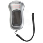 Compact solar torch with a brightness of 10.000 mcd. The torch can also be powered manually by turning the handle. ABS Plastic.