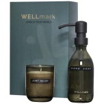 Wellmark Discovery 250 ml hand soap dispenser and 150 g scented candle set