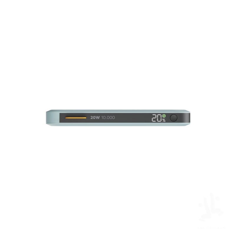 The 10.000 mAh Fuel Series power bank features 2 x USB-C ports, and one USB-A port, and with the 20W USB-C PD output it's perfect for fast charging of all kinds of mobile devices. The contemporary yet calming colour, combined with the unique pattern on the power bank, makes it a gorgeous finished product to take with you, wherever you go! Output: 1 USB-C 20W power delivery, 1 USB-C 18W, and 1 USB-A 22.5W. Delivered with a USB-C to USB-C cable, and a user manual. Recycled ABS Plastic.