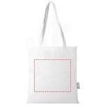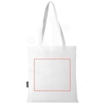 Made from durable and tear resistant RPET, the Zeus GRS recycled large tote bag is a perfect and more sustainable option for fairs or conferences. Its slim design makes it an elegant model and suitable for carrying lightweight items like a notebook and a pen. The handles are 29 cm long and therefore the tote bag is easy to carry over the shoulder. Resistance up to 5 kg weight. GRS certified recycled polyester, 80 g/m2.