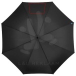 Tyylikäs sateenvarjo, jossa on metallivarsi, lasikuituruoteet ja kumipäällysteinen muovikahva. Mukana sävyyn sopiva suojapussi.