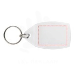 Kirkas P5-avaimenperä, jossa on metallinen avainrengas. Tulosteinsertin mitat: 3,5 cm x 2,4 cm.