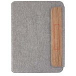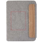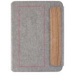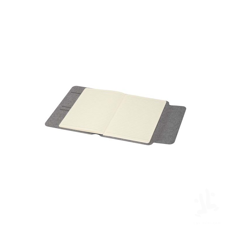 A5-kokoinen Andean-kansio on valmistettu osittain RCS-sertifioidusta kierrätetystä polyesteristä, mikä tarjoaa kestävämmän vaihtoehdon vähentämällä kokonaan uusien materiaalien käyttöä. Tyylikkäissä, harmaissa, kovissa kansissa on pyöristetyt kulmat, ja ne on tehty tarkkuushitsaustekniikalla. Kansio kiinnitetään magneettisella sulkimella, jota korostava hienostunut, pähkinäpuinen yksityiskohta lisää modernia ja hienostunutta ilmettä. Sisäpuolella on irrotettava pehmeäkantinen muistikirja, jossa on 64 kermanväristä, viivoitettua arkkia. Muistikirja on valmistettu vastuullisesti hankitusta 80 g/m²:n paperista. Toimitetaan voimapaperin värisessä paperitaskussa.