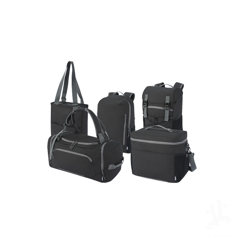 Vedenkestävä 20 tölkin kylmälaukku, jonka osat, mukaan lukien vetoketjut, on valmistettu GRS-sertifioiduista kierrätysmateriaaleista. Kylmälaukussa on tilava vetoketjullinen päälokero, jossa on elintarviketurvallinen paksu PEVA- ja vaahtoeriste. Pitää juomat ja virvokkeet kylminä tuntien ajan. 2 verkkotaskua ja yksi avoin etutasku lisätilaa varten. Kantohihnan ja säädettävän ja pehmustetun olkahihnan ansiosta laukkua on mukava kantaa. Laukun kangas, vuori, nauha ja vetoketjut on valmistettu GRS-kierrätysmateriaaleista. Tilavuus: 22 litraa. PVC-vapaa.