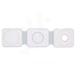 Armus 3-in-1 langaton laturi on valmistettu kierrätetystä muovista ja sillä voi ladata älypuhelinta, AirPodeja ja iWatchia samanaikaisesti jopa 15 W:n langattomalla latausnopeudella. Sen kokoontaittuva, magneettinen muotoilu mahdollistaa puhelimesi asettamisen vaakasuoraan asentoon – täydellinen katseluun latauksen aikana. Yhteensopiva kaikkien langattomasti ladattavien puhelimien kanssa, mukaan lukien iPhone 12 ja uudemmat (tai puhelimet, joissa on magneettirengas). Mukana Type-C-liitin.