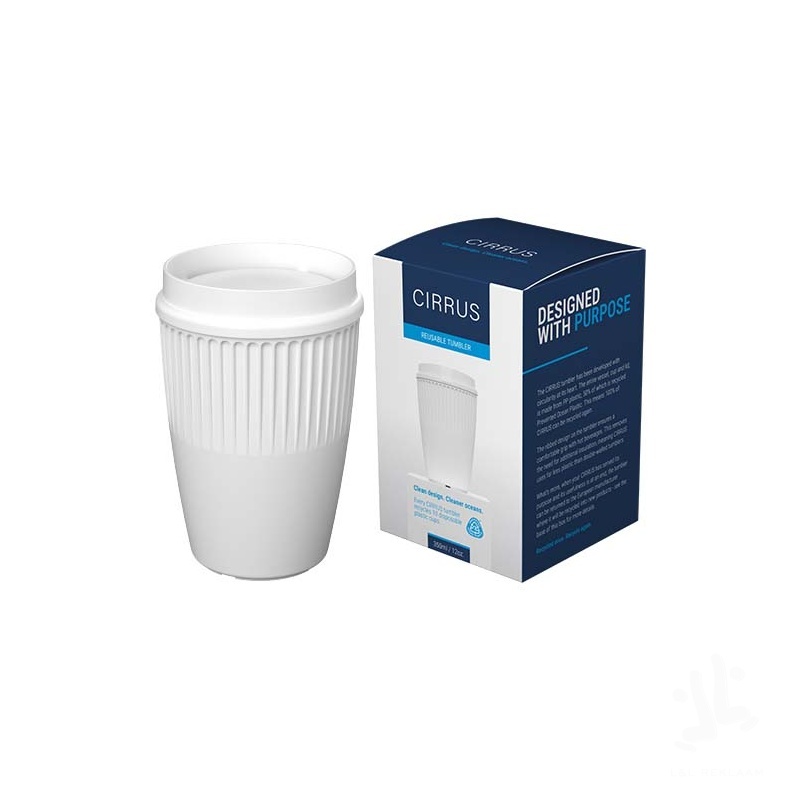 Cirrus-kahvimuki (350 ml) sisältää 50 % Prevented Ocean Plastic -materiaalia – jokainen kahvimuki kierrättää ja hyödyntää uudelleen 10 Aasiasta kerättyä kertakäyttöistä muovimukia. Cirrus kahvimuki, jossa on ainutlaatuinen 360° kääntyvä kansi. Muki on hienostunut ja tyylikäs yksiseinäinen, jossa on muotoillut reunat, joten se pysyy käsissä turvallisesti ja mukavasti. Innovatiivinen kansi mahdollistaa juomisen miltä tahansa puolelta mukia ja tarjoaa paremman juomiskokemuksen vahvistamalla haluamasi juoman aromia. Sekä kansi että muki on valmistettu täysin kierrätettävästä muovista. Nauti kuumista suosikkijuomistasi mukavasti ja tyylikkäästi.