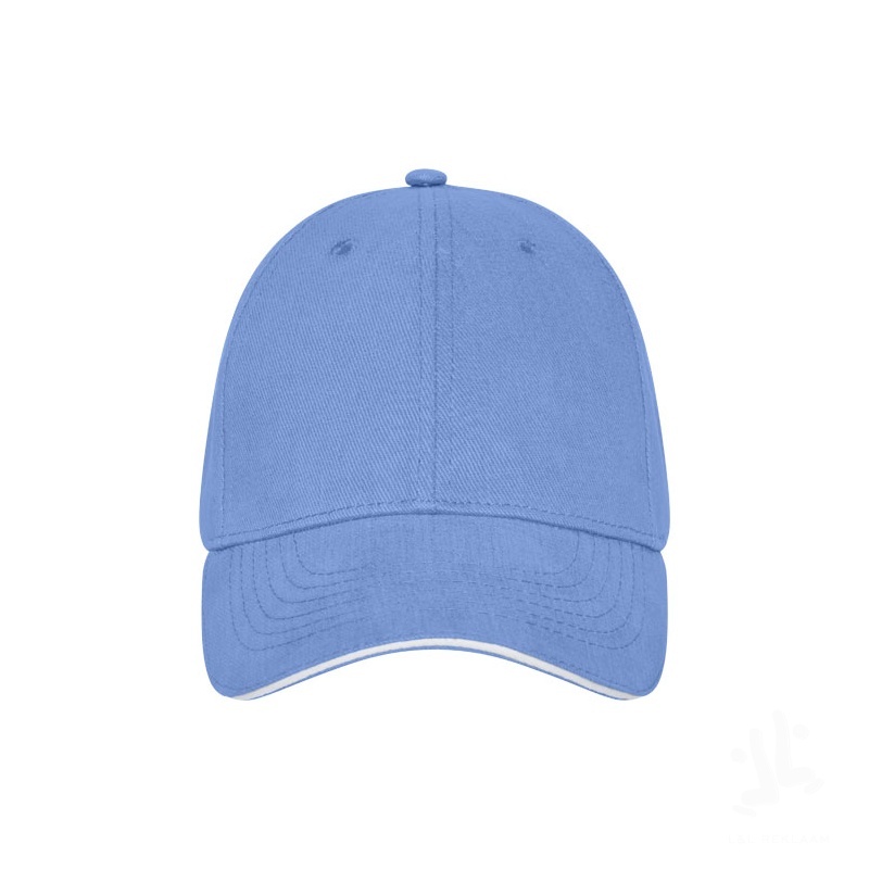 Darton 6 paneelisessa sandwich -lippiksessä on tyylikkäällä sandwich-raidalla varustettu käyristetty lippa. Klassinen muotoilu yhdistettynä tärkeään aurinkosuojaan. Brodeeratut reiät takaavat optimaalisen ilmanvaihdon, lippis pitää sinut viileänä ulkoilun aikana. Pään ympärysmitta on 58 cm, joten se sopii useimmille käyttäjille. Metallinen solkisuljenta mahdollistaa helpon ja turvallisen säädön. Valmistettu 260 g/m² tukevasta harjatusta puuvillatwillistä. Ihanteellinen lisävaruste rennoille retkille tai ulkoilma-aktiviteetteihin.
