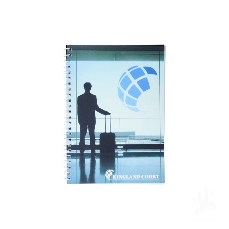 Desk-Mate®-spiraalimuistikirja, A5. Sisältää 50 kpl tyhjiä paperiarkkeja, 80 g/m2, kiiltävä kartonkikansi (250 g/m2) ja 450 micronin läpinäkyvä polypropeenikansi edessä. Musta tai valkoinen kierre. Myös 100 arkkia saatavilla. Voit räätälöidä muistikirjan täysin. Valitse esimerkiksi viivoitetut, ruudulliset tai blankot sivut - kaikki on mahdollista!