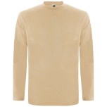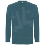 Pitkähihainen tuubikudottu t-paita, nelikerroksinen pyöreä pääntie. Vahvistettu sauma pääntiessä ja olkapäissä. Hihoissa ei ole resoreita. Irrotettava tuotemerkki. Tuubikudottu malli aikuisten koossa ja sivusaumat lasten koossa. Kuvan malli on 185 cm pitkä ja hänellä on päällään koko L.