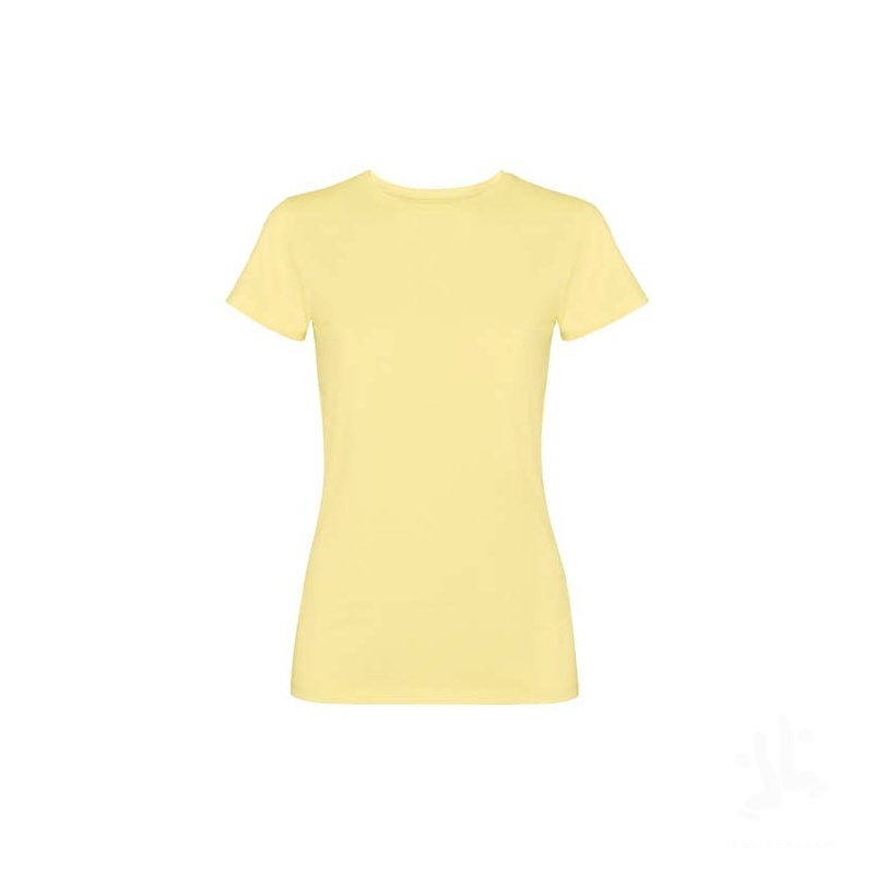 Lyhythihainen t-paita naisille. Happopesuviimeistely. 1 x 1 -uurrettu pyöreä pääntie sivusaumoilla. Sävy sävyyn -peittotikkaus pääntiessä.