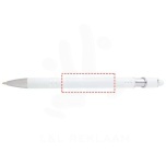 Hopeanvärisen Kish kuulakärkikynän runko on valmistettu kierrätetystä alumiinista ja kosketusnäyttöpää silikonista. Se vähentää kaatopaikoille päätyvän jätteen määrää ja auttaa säästämään luonnonvaroja kasvihuonepäästöjen vähentämiseksi. Musteen väri: Sininen. Kirjoituspituus: 800 metriä. Kärjen paksuus: 1,0 mm.