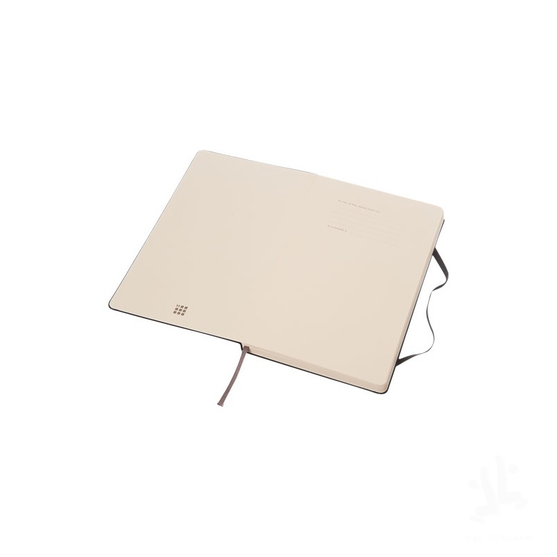 Suosittu musta Moleskinen kovakantinen Classic-muistikirja koossa L. Saatavilla myös muita värivaihtoehtoja. Pyöristetyt kulmat, elastinen suljin ja kirjanmerkkinaru. Takakannessa kartonkinen avautuva tasku, jossa on kangaspinta. 240 norsunluunväristä pisteviivoitettua sivua.
