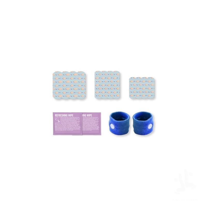 Lasten matkasetti, jossa on perustarvikkeet haavanhoitoon ja matkarannekkeita matkapahoinvoinnin vähentämiseksi. Sisältö: 12 lasten laastaria, 2 kosteuspyyhettä ja 2 matkaranneketta. Kaikki pakkauksen sisältämät ensiapu- ja hoitotuotteet täyttävät kaikki sovellettavat EU:n säännökset. Hinta sisältää täysväritulosteen. Toimitetaan paperipussissa.