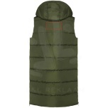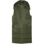 Toppaliivi irrotettavalla hupulla. Korkea kaulus. Edessä vetoketju läpän alla. Kaksi taskua painonapeilla. Sivuissa vetoketjut. Sisäpuolella rintatasku. Vettä hylkivä.