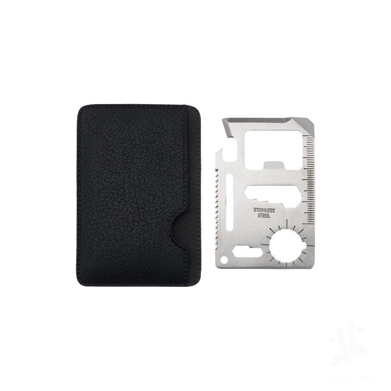 15 eri toimintoa samassa monitoimityökalussa, nahkajäljitelmäsuojus. Toiminnot: tölkinavaaja, veitsi, ruuvimeisseli, viivain, pullonavaaja, useita avainasentoja eri kokoisille muttereille ja pultinkannoille, perhosavain, sahanterä, suuntaosoitin, kaksiasentoinen avain sekä reikä nyörille/avainrenkaalle.