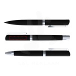 Tämä elegantti kolmiosainen kynäsetti on valmistettu alumiinista, ja siinä on pehmeä kumipinta. Setti sisältää kuulakärkikynän, jossa on korkealaatuista saksalaista sinistä Dokumental®-mustetta ja 1 800 metrin kirjoituspituus sekä tarkkuutta tuova volframikarbidikärki. Kuulakynässä käytetään saksalaista mustaa Dokumental®-mustetta, jonka kapasiteetti on 400 metriä, joten se sopii täydellisesti sujuvaan ja tyylikkääseen kirjoittamiseen. Grafiittikynällä voi kirjoittaa jopa 5 000 metriä, joten se sopii erinomaisesti luonnosteluun ja muistiinpanoihin. Jokaisen kirjoitusvälineen mukana tulee lahjapakkauksen yläosassa säilytettävä ylimääräinen täyttöpakkaus: sinistä mustetta kuulakärkikynään (enintään 2 vuoden käyttöaika), mustaa mustetta kuulamustekynään (enintään 6 kuukautta) ja ylimääräistä lyijyä lyijykynään (enintään 3 vuotta). Voidaan personoida laserkaiverruksella, jossa on metalliefekti. Toimitetaan kierrätetystä kartongista valmistetussa lahjapakkauksessa.