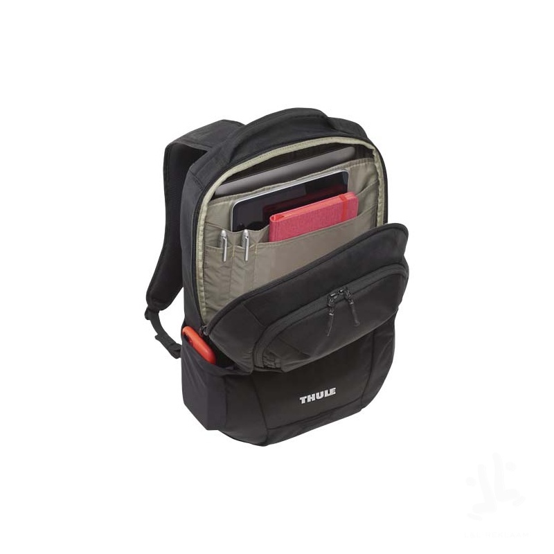 Thule Lumion 16 tuuman kannettavan tietokoneen reppu on valmistettu kierrätetystä polyesterista. Siinä on vetoketjullinen etutasku järjestelyä varten sekä suurempi vetoketjullinen lokero, jossa on pehmustettu 16 tuuman kannettavan tietokoneen suojatasku. Yläosan kantokahvan ansiosta laukku on helppo napata mukaan, ja pehmustettu takapaneeli tarjoaa alemman ristiselän tukea. Sivussa oleva vesipullotasku ja ketjutetut hihnat ovat tämän repun lisäominaisuuksia.
