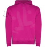 Collegepaita kaksivärisellä hupulla tuplakankaasta. Vahvistetut saumat pääntiessä ja kengurutaskussa. Hihansuut ja vyötärö elastaania sisältävää 1x1 resoria. Irrotettava tuotemerkki. Kuvan malli on 120 cm pitkä ja hänellä on päällään koko 5/6.